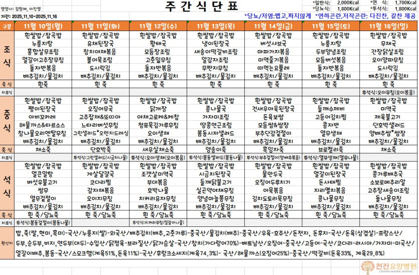 [11월 10일~11월 16일] 주간식단표