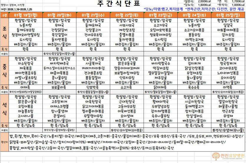 [1월 19일~1월 25일] 주간식단표